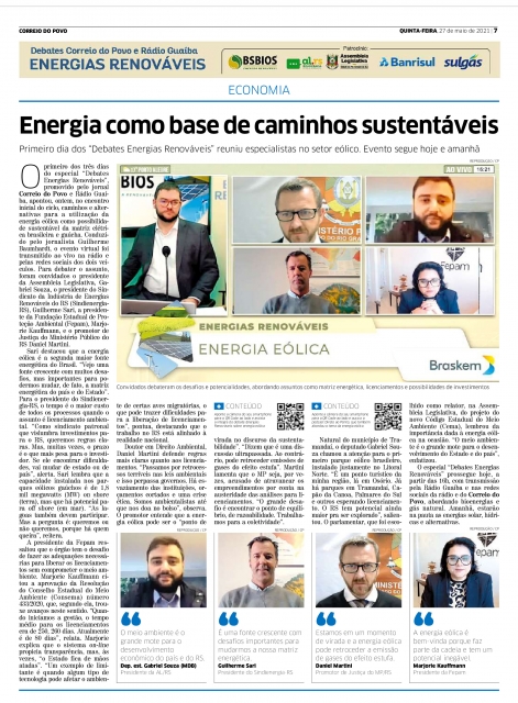 "Energia como base de caminhos sustentáveis" - Correio do Povo, 27/05/21