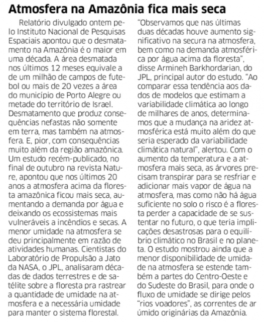 Reportagem do jornal Correio do Povo - 19/11/2019.